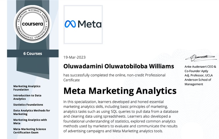 Fun fact: I used Coursera to get my Marketing Analytics certification by Meta and when applying for a digital marketing role, this certification helped me stand out from other applicants.
